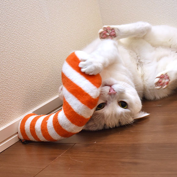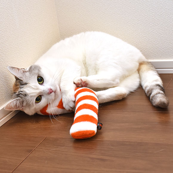 長いフォルムは愛猫が抱えて楽しく遊ぶサイズにピッタリです。