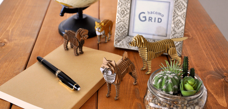 精密にレーザーカットされたダンボールのパーツを組み合わせてつくる手のひらサイズの立体造形。