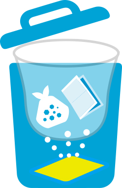 ゴミ箱の底にパウチ(パウチ:白い不織布の袋)を置いておくだけで、消臭成分がゴミ箱内に広がり消臭します。